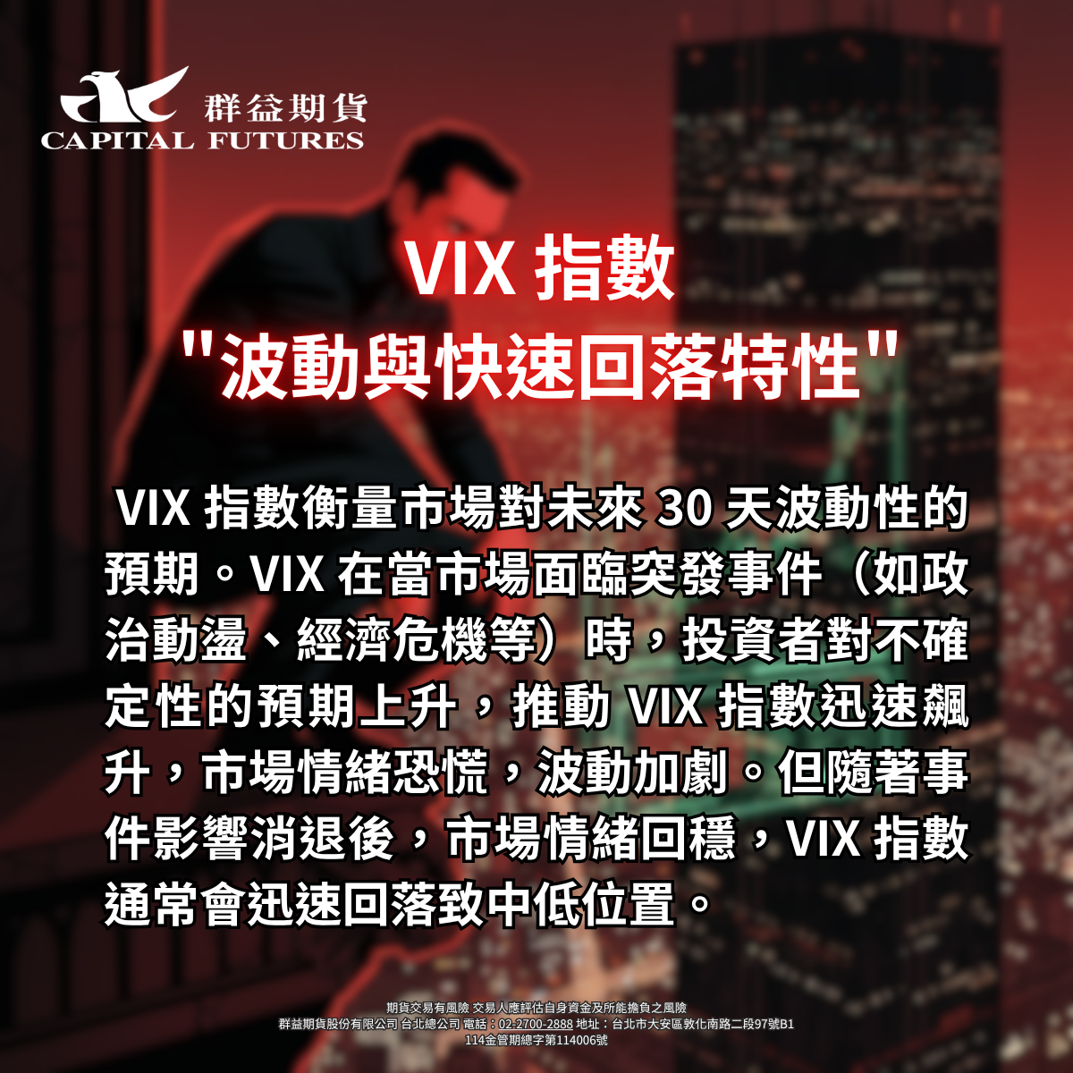 - VIX 是全球公認的「恐慌指數」,反映未來 30 天波動預期。