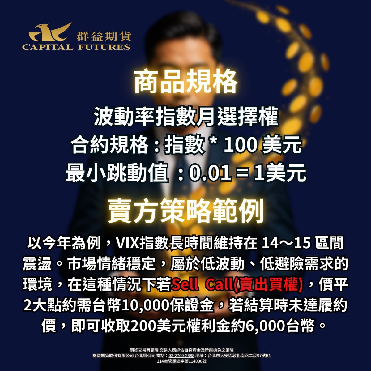 - VIX 選擇權為 CBOE 最新商品:低門檻・高彈性・風險可控。