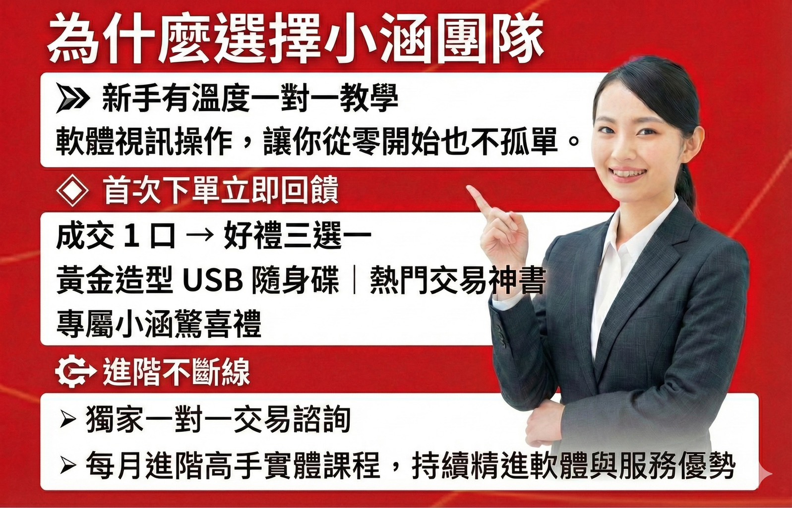 開戶不難,但要遇到 真正懂你、隨時在身邊的專業團隊,才是交易能走得久的關鍵。在資訊爆炸、社群氾濫的時代,你需要的不是「更多群組」,而是一個能陪伴、解答、實戰教學 的專屬團隊。
