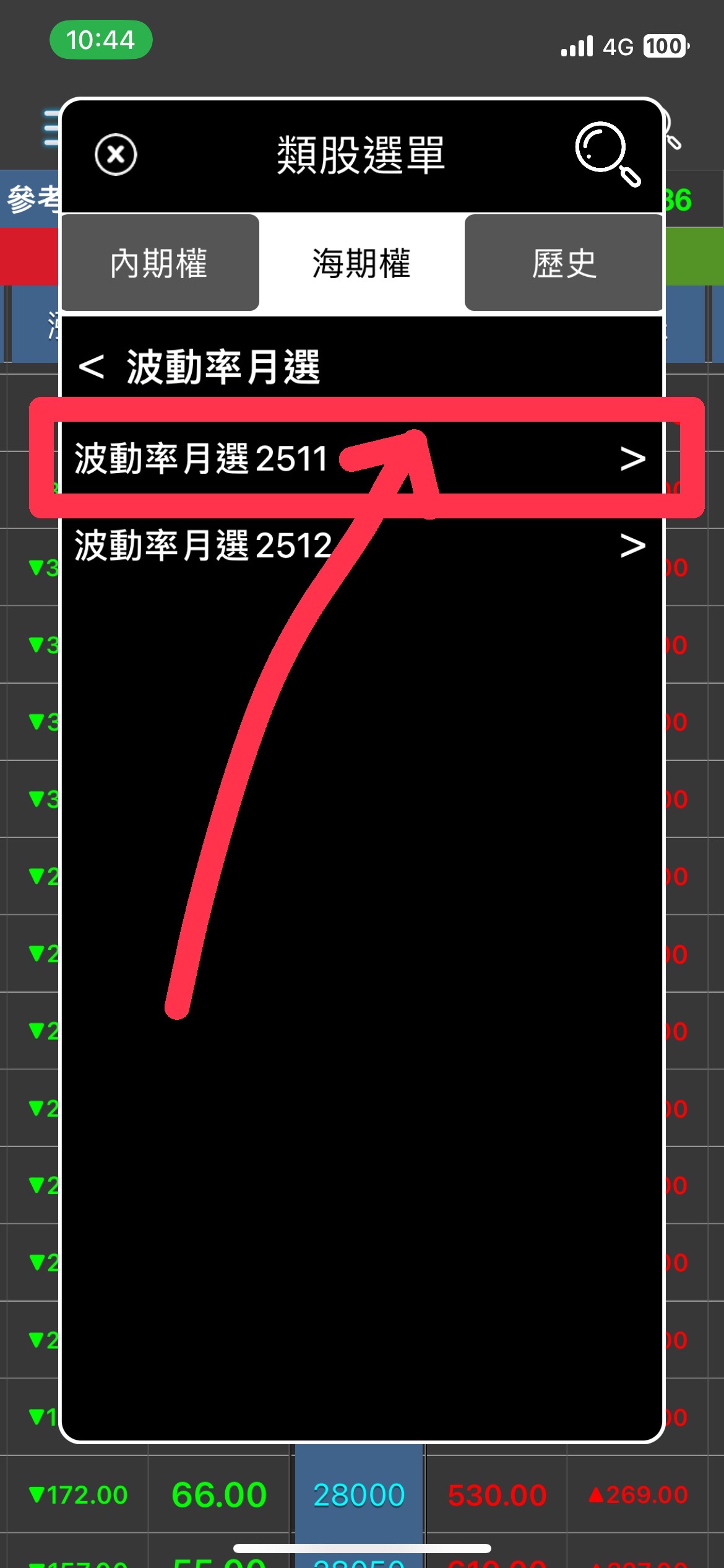 四、手機版(行動贏家)查看 CBOE 選擇權